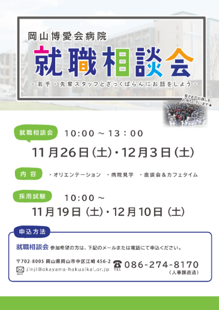 参加希望の方は岡山博愛会病院 人事課までお申し込みください。